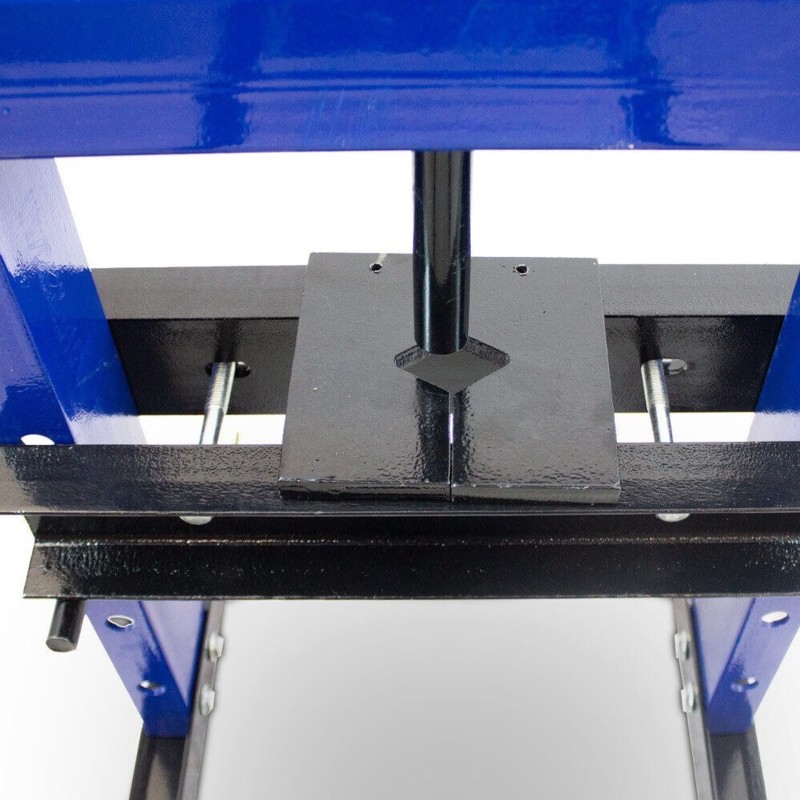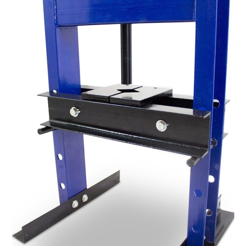 Ta prasa hydrauliczna o nacisku 6 ton jest idealnym narzędziem do wyrównywania, gięcia, tłoczenia, prasowania i ściskania. Solidna konstrukcja ramy wykonana jest ze stali, a skręcane poprzeczki ze szczękami podporowymi można regulować na różnych wysokościach.