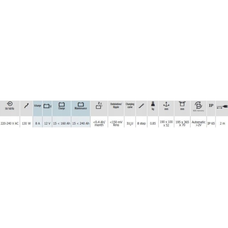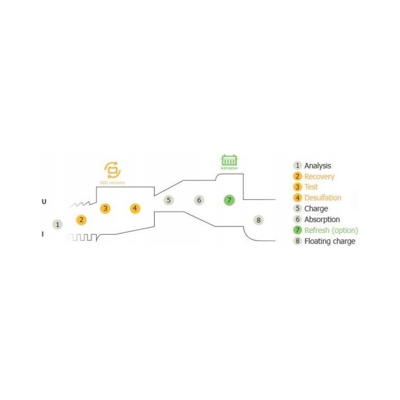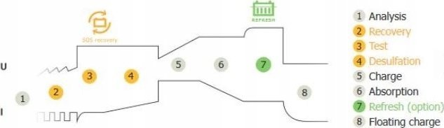 Zapewnia pełne ładowanie i konserwację akumulatora w 8 krokach, bez potrzeby stałego nadzoru, co maksymalizuje wydajność i żywotność Twojego akumulatora.