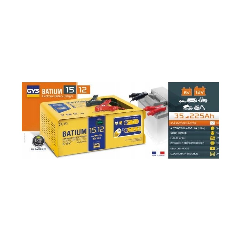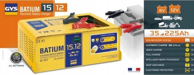 Inteligentny prostownik BATIUM 15-12 z mikroprocesorem Prefiks GYS Indeks 024519 Numer OE PROSTOWNIK Producent GYS napięcie zasilania 230V/50Hz Max. pobór prądu 225 W Napięcia ładowania 6/12V prąd ładowania 7/10/15A Max.pojemność akumulatora 35-225Ah waga 5,7kg