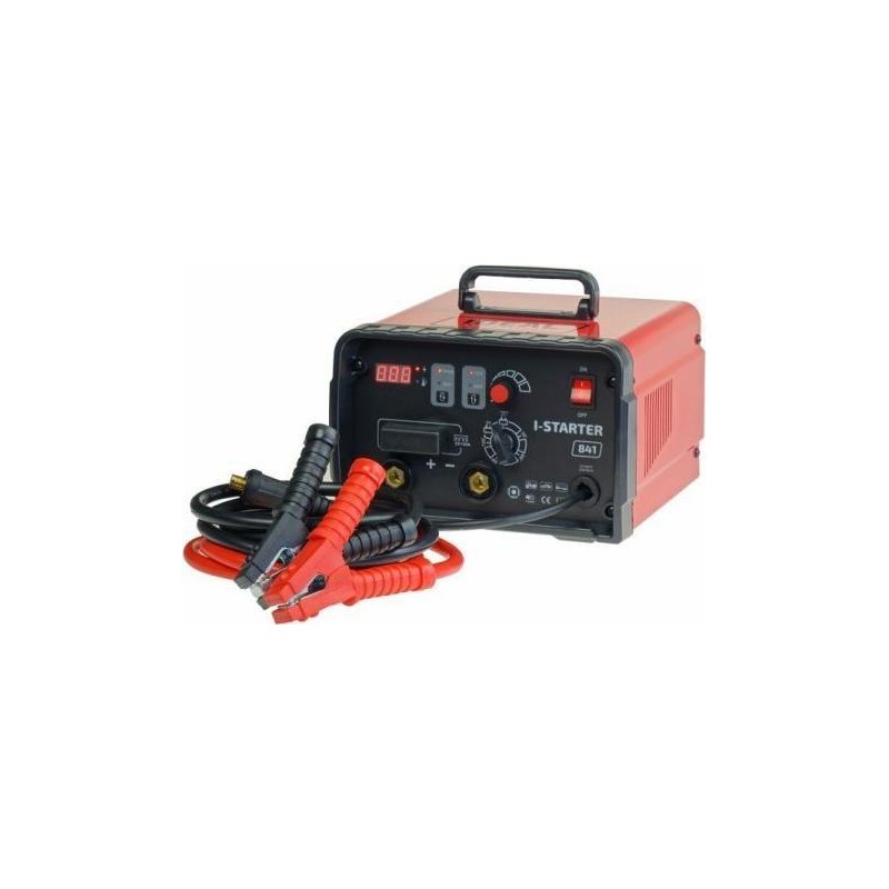 DANE TECHNICZNE: Stopień ochronyIP 20 Waga7 kg Wymiary gabarytowe dł x szer x wys295x300x200 Napięcie ładowania12/24 V Prąd rozruchu800 A Prąd ładowania80 A Stopnie regulacji prądu ładowaniaBezstopniowo Znamionowa pojemność akumulatora Ah 15h (min/max)20 - 1000 Ah Znamionowy prąd rozruchu EN 60335-2-29700 A Moc (ładowanie / rozruch)2,5 / 14 kW PARAMETRY ZASILANIA Zabezpieczenie przeciążeniowe w urządzeniu2 x 150 A Znamionowe napięcie zasilania230V-1ph 50/60 Hz CECHY UZYTKOWE: I-STARTER 841 jest inwertorowym prostownikiem do ładowania 12 i 24 woltowych akumulatorów kwasowych, posiadający funkcję rozruchu samochodów z silnikami benzynowymi oraz diesla (w tym vanów, lekkich ciężarówek i traktorów). Urządzenie wyposażone jest w cyfrowy miernik prądu ładowania. Bezstopniowa regulacja prądu ładowania umożliwia jeszcze dokładniejsze ustawienie prostownika. Urządzenie posiada układ chłodzenia wentylatorem co zdecydowanie zwiększa jego wydajność. Urządzenie wyposażone jest w zabezpieczenie przeciw zwarciu biegunów, przeciążeniu i odwrotnej biegunowości, co zwiększa jego niezawodność. Zasilanie jednofazowe. Urządzenie jest wyposażone we wtyczkę zasilania. Urządzenie wyposażone jest w przewody do ładowania i rozruchu, oraz bezpiecznik blaszkowy. ...