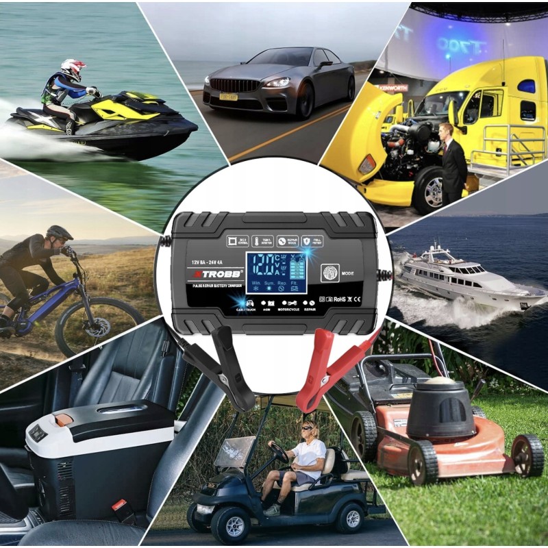 Inteligentny prostownik, który umożliwia ładowanie akumulatorów stosowanych między innymi w: