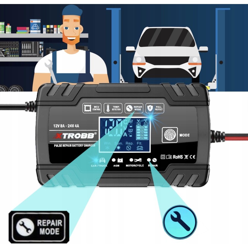Prostownik SAMOCHODOWY AUTOMATYCZNY Z FUNKCJĄ NAPRAWY AKUMULATORÓW 12V 24V