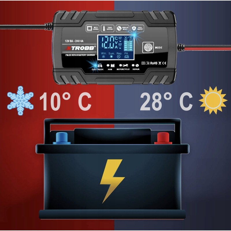 Często gdy akumulator wydaje się już nie do uratowania i zwykłe prostowniki nie są w stanie go naładować, wystarczy włączyć tryb naprawy akumulatora w oferowanym przez nas prostowniku. Tryb ten został specjalnie stworzony do naprawy nawet bardzo starych akumulatorów, w których napięcie jest już bardzo niskie.