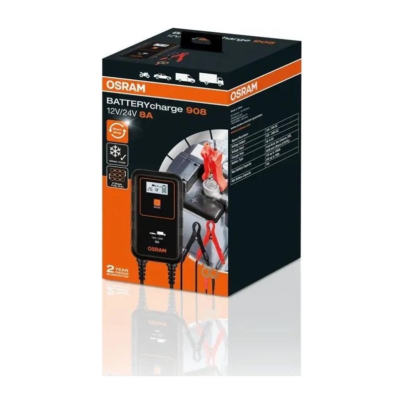 Prostownik do akumulatorów samochodowych OSRAM BATTERYcharge 908 12V/24V 8A
