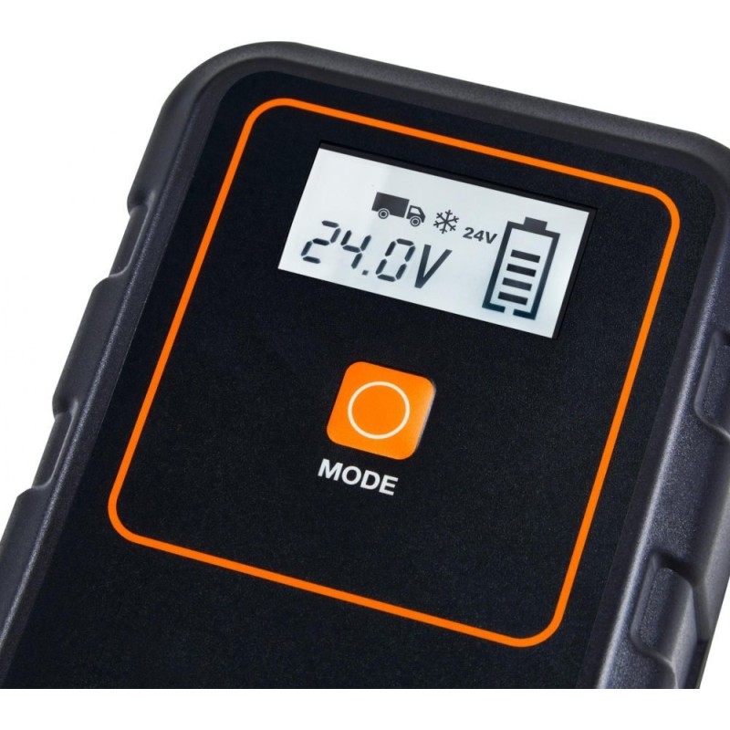 9-etapowy proces ładowania dla akumulatorów kwasowo-ołowiowych/AGM, 7-etapowy proces ładowania akumulatorów litowych. Zawiera cyfrowy wyświetlacz ułatwiający podgląd procesu ładowania oraz szereg zabezpieczeń, w tym przed odwrotną polaryzacją i przepięciami. Podłącz i bądź pewny, że ładowarka samochodowa utrzymuje poziom naładowania akumulatora samochodowego, automatycznie przełączając się w tryb konserwacji przy długotrwałym podłączeniu, gdy bateria jest w pełni naładowana.