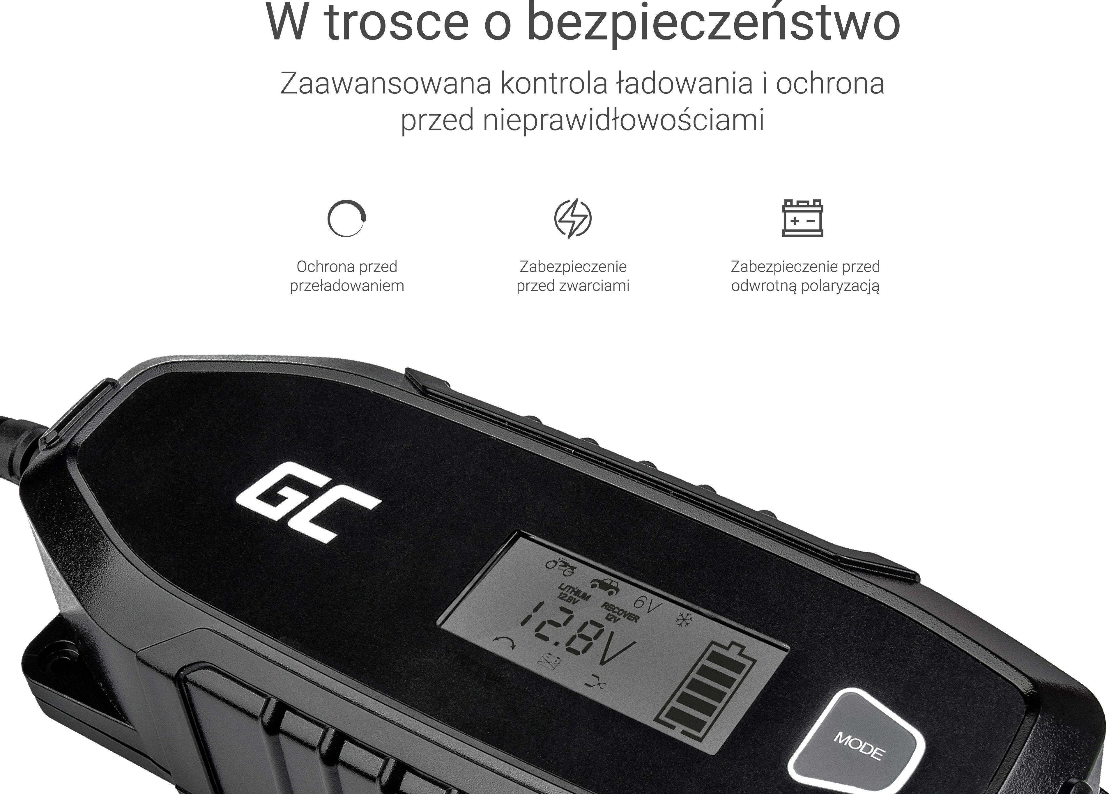 Green Cell Automatyczna Ładowarka, Prostownik Green Cell do akumulatorów 6V / 12V (4A) z funkcją inteligentnej diagnostyki