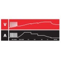 - A - prąd ładowania dostarczany przez prostownik do akumulatora. Wyświetlacz powróci po upływie 5 sekund do wyświetlania napięcia akumulatora
