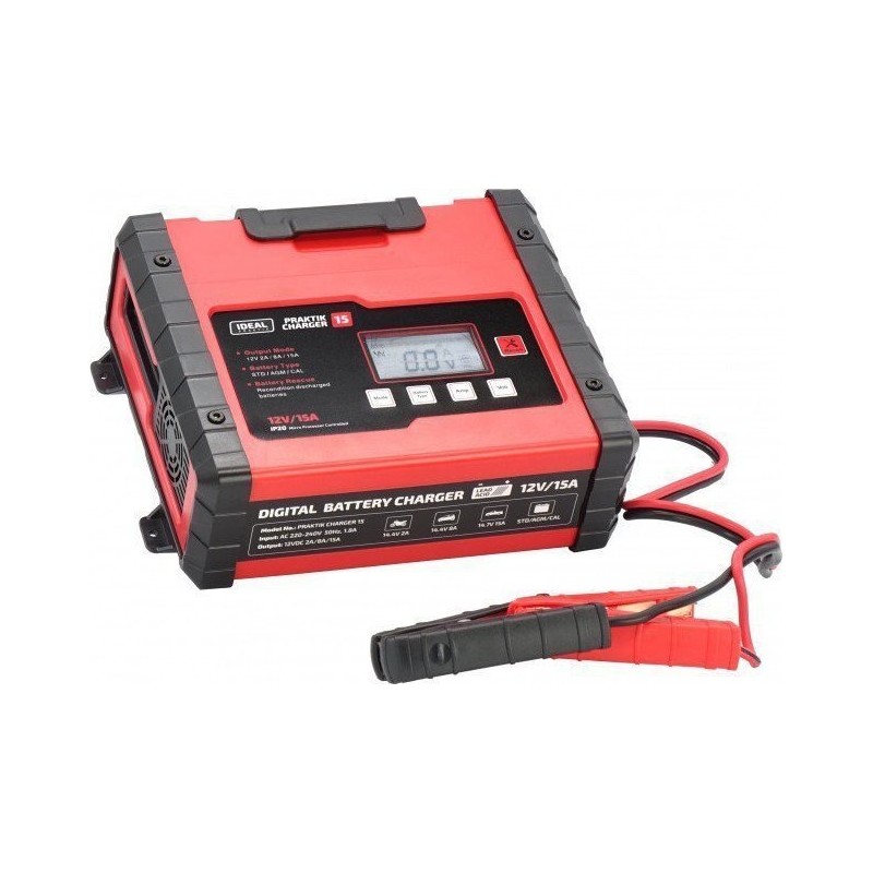 DANE TECHNICZNE: Znamionowe napięcie zasilania 230V 50Hz (1ph) Moc 210 W Stopień ochrony IP20 Waga 1280g Wymiary gabarytowe dł x szer x wys 215x185x75 mm Wymiary opakowania dł x szer x wys 88x240x192mm Napięcie ładowania 12 V Prąd ładowania 2A / 8A / 15A (12V) Znamionowa pojemność akumulatora Ah 15h (min/max) 10—300Ah (12V), ładowanie konserwacyjne do 300Ah ...
