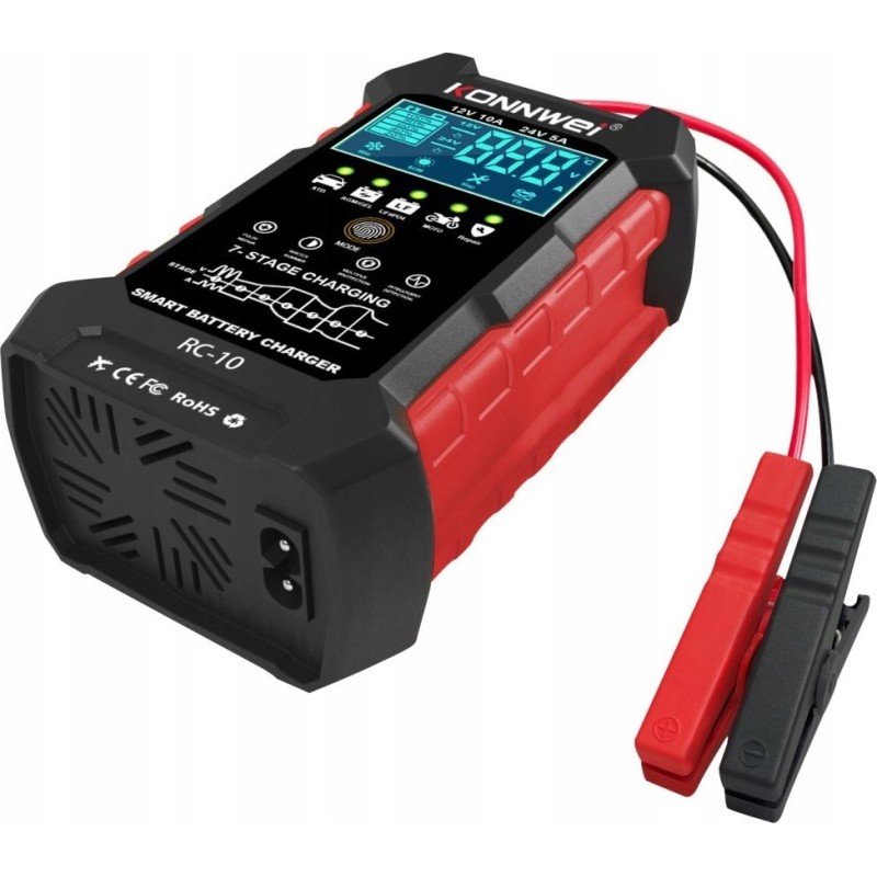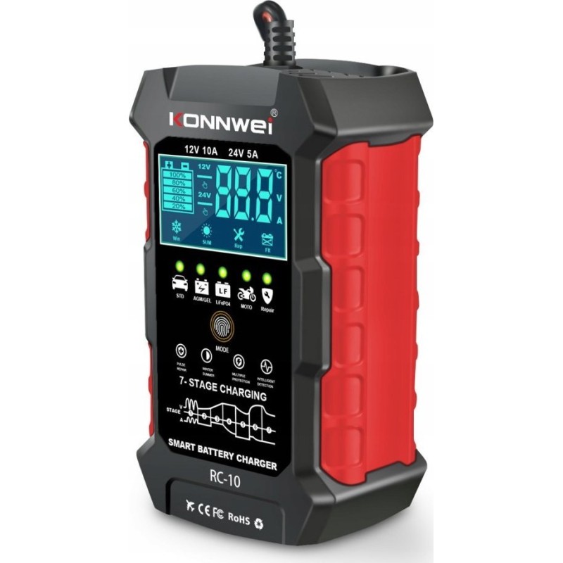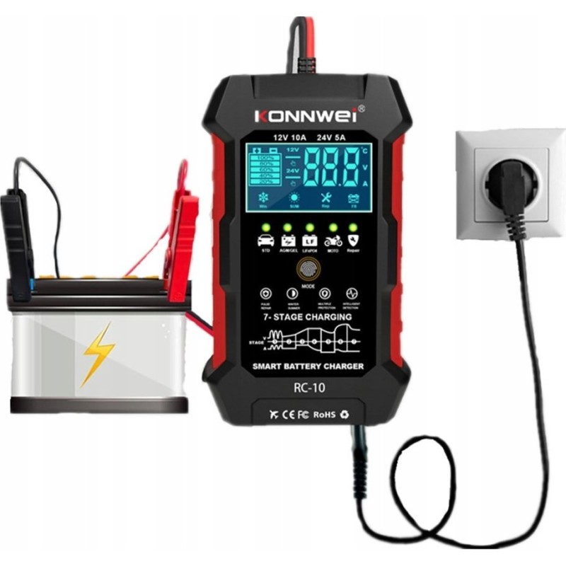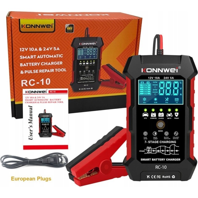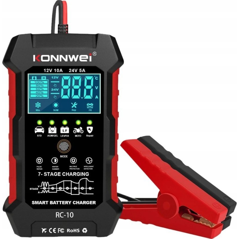 - Prostownik Konnwei RC-10 to doskonały sprzęt do ładowania i regeneracji baterii. Dzięki nowoczesnej technologii i wysokiej jakości komponentom, ten prostownik oferuje szybkie i bezpieczne ładowanie różnych rodzajów baterii, takich jak baterie samochodowe, motocyklowe czy łodziowe. Przejrzysty wyświetlacz LED i różne tryby ładowania umożliwiają łatwe dostosowanie do indywidualnych potrzeb. Prostownik Konnwei RC-10 to niezawodne narzędzie, które sprawdzi się w warsztacie, garażu czy podczas podróży samochodem. Optymalizuj wydajność swoich baterii dzięki prostownikowi Konnwei RC-10.
