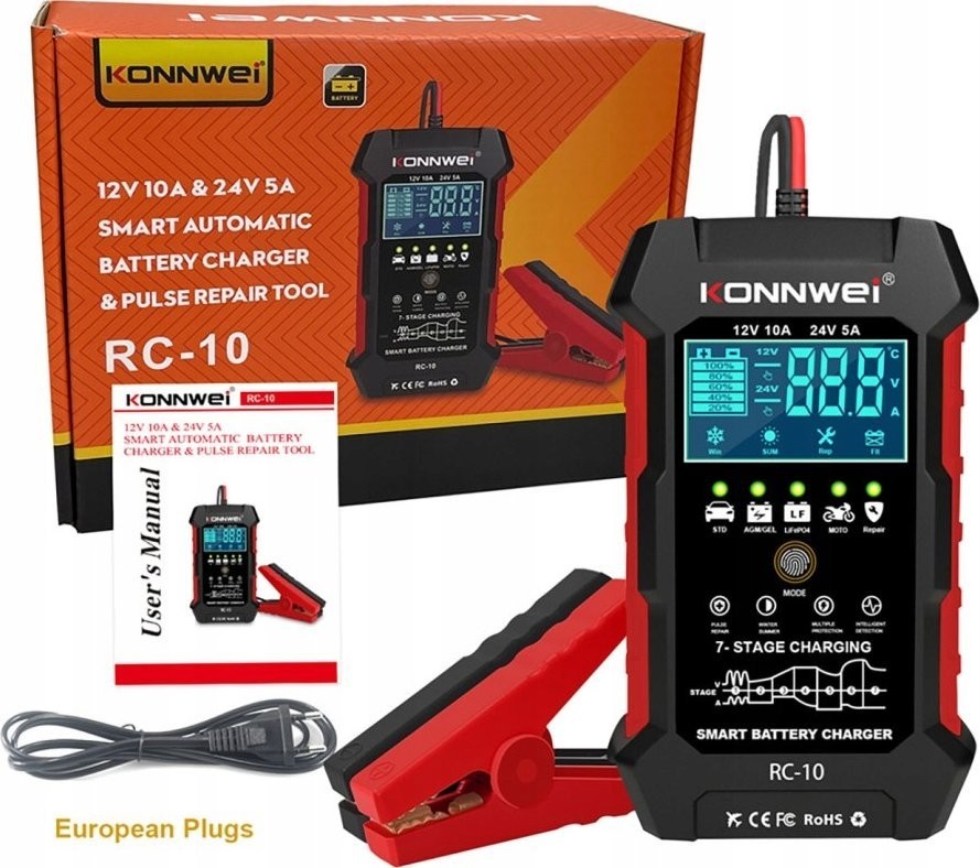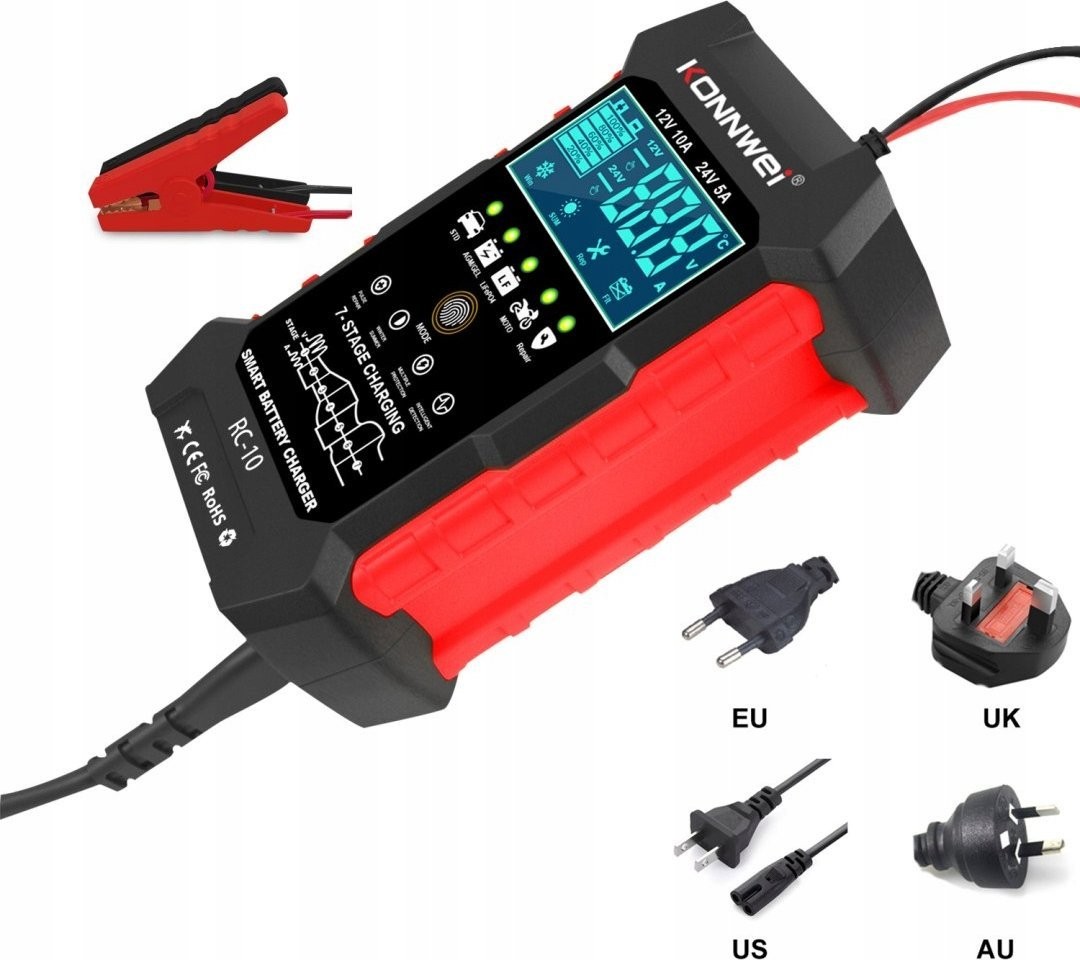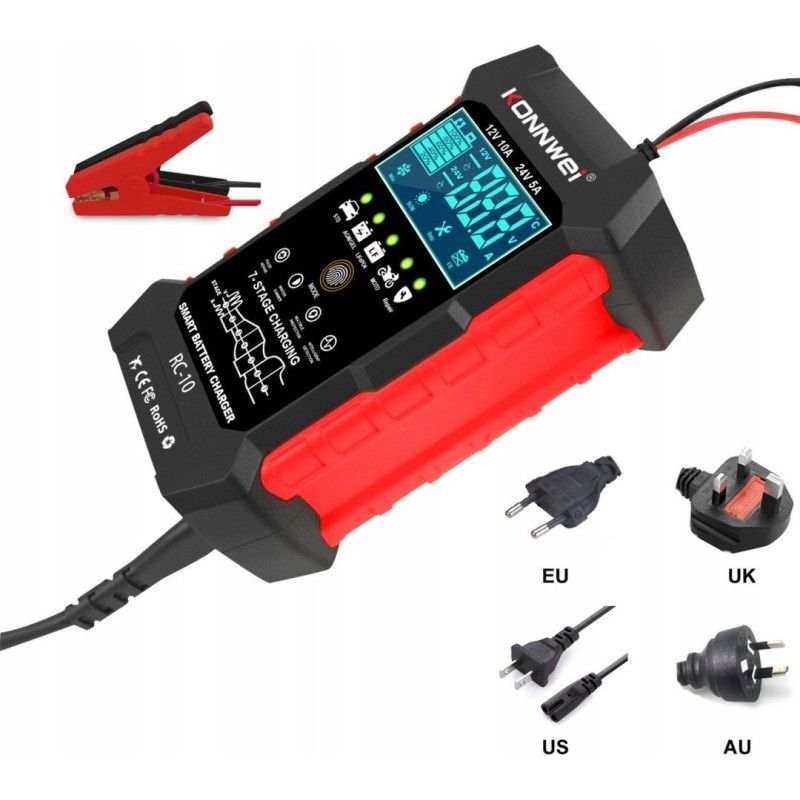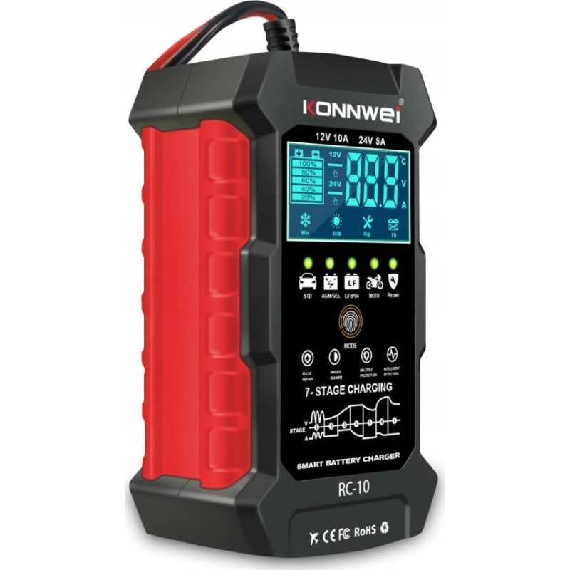 - Prostownik Konnwei RC-10 to doskonały sprzęt do ładowania i regeneracji baterii. Dzięki nowoczesnej technologii i wysokiej jakości komponentom, ten prostownik oferuje szybkie i bezpieczne ładowanie różnych rodzajów baterii, takich jak baterie samochodowe, motocyklowe czy łodziowe. Przejrzysty wyświetlacz LED i różne tryby ładowania umożliwiają łatwe dostosowanie do indywidualnych potrzeb. Prostownik Konnwei RC-10 to niezawodne narzędzie, które sprawdzi się w warsztacie, garażu czy podczas podróży samochodem. Optymalizuj wydajność swoich baterii dzięki prostownikowi Konnwei RC-10.