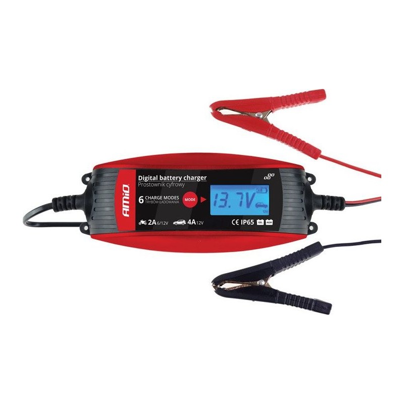 Prostownik na bieżąco pokazuje napięcie akumulatora i stopień naładowania, a także reguluje prąd ładowania w zależności od jego potrzeb. Po naładowaniu wyświetla komunikat FULL i podtrzymuje napięcie na akumulatorze.