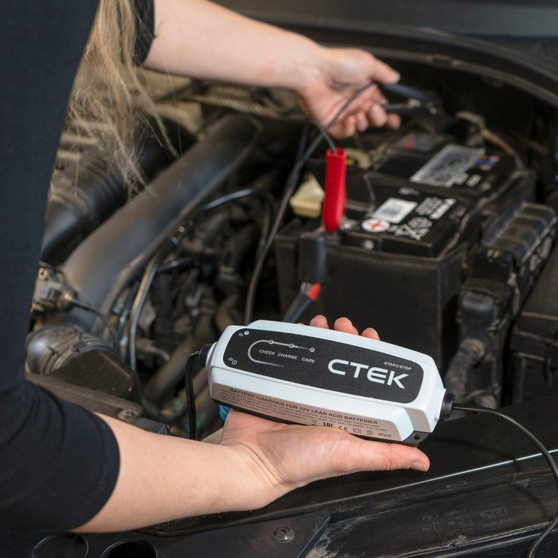 Prostownik CT5 START/STOP, napięcie ładowania: 12 V CTEK 14/110, prąd ładowania: 3,8A, napięcie zasilania: 230V, rodzaj akumulatora: AGM/Ca/Ca/EFB/GEL/MF/WET, bez przycisków; wystarczy podłączyć