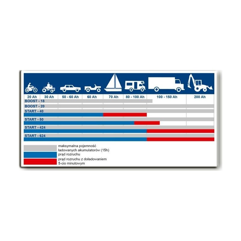 - - poj. ładowanych akumulatorów: 25 ÷ 120 Ah