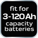 - Obsługiwane pojemności akumulatorów: 3-120Ah