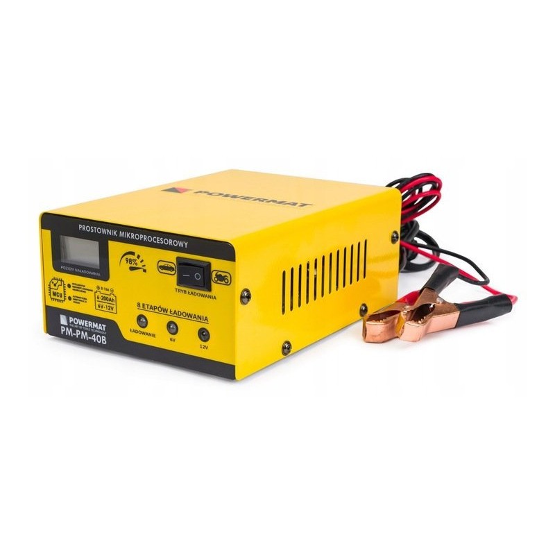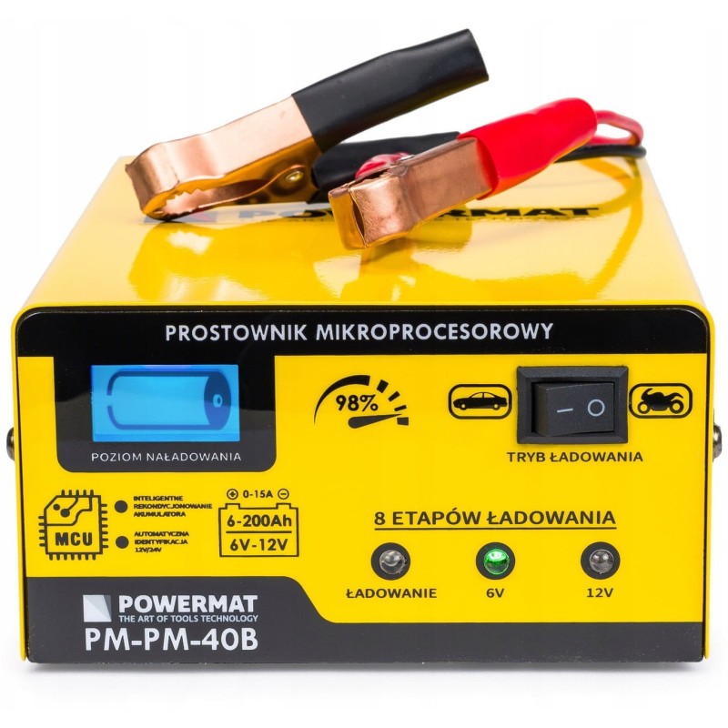 Prostownik mikroprocesorowy akumulatorowy 6/12V Powermat PM-PM-40B 8-etapowy LCD