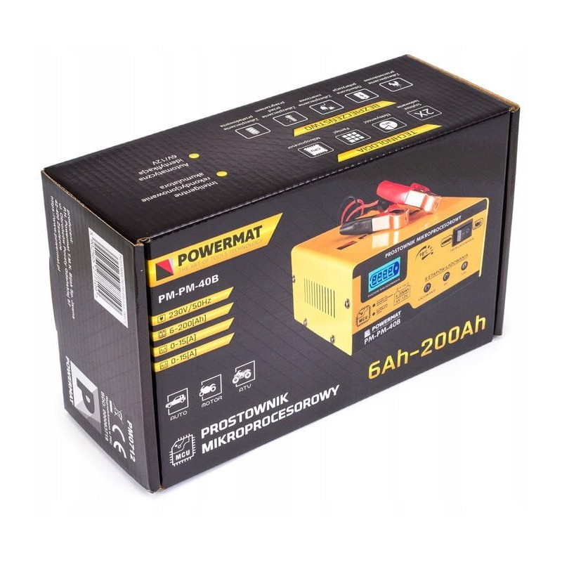 Prostownik PM-PM-40B marki Powermat to pierwsza na rynku ładowarka akumlatorów z mikroprocesorowym systemem kontroli i sterowania w technologii PWM z możliwością ładowania akumulatorów 6V i 12V, która inteligentnie i konkretnie dobierze odpowiednie parametry sprawiając, że Twój rozładowany i zaniedbany akumulator zostanie zregenerowany.