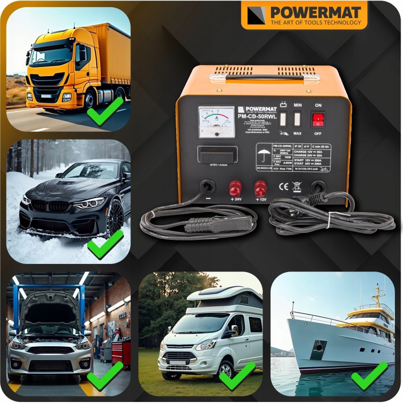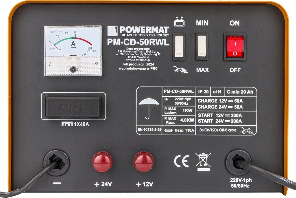 Powermat PROSTOWNIK AKUMULATOROWY Z ROZRUCHEM 200A ROZRUCH SAMOCHODOWY 12/24V 20-700