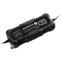 - Utrzymuje naładowanie - wznawia ładowanie w przypadku spadku napięcia na akumulatorze, nawet w przypadku zaniku/wznowienia napięcia z sieci AC;