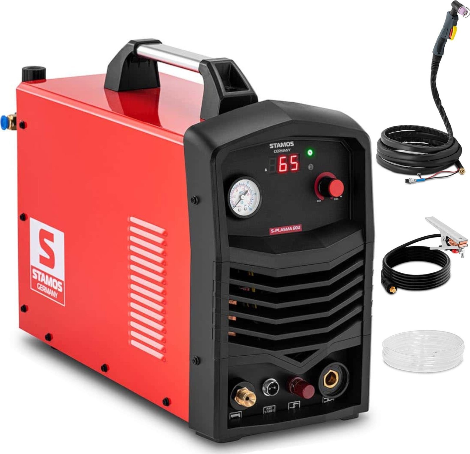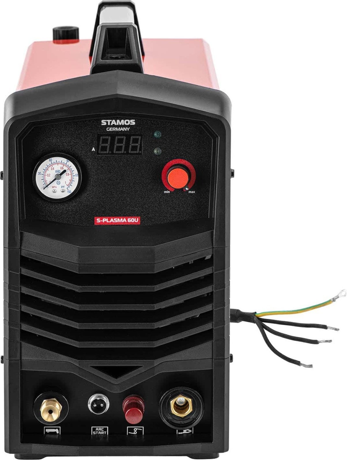 Dzięki przecinarce plazmowej Stamos Germany masz wszystko pod kontrolą! Przejrzysty panel sterowania z ekranem LED i manometrem błyskawicznie informuje o parametrach. Po prostu ustaw ciśnienie i prąd cięcia według potrzeb. Przy odpowiednim ustawieniu szybko i precyzyjnie przetniesz różne metale, takie jak stal, stal nierdzewna, miedź lub aluminium.