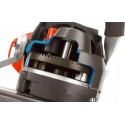 - Obroty „do użytkownika” – tarcze wszystkich naszych przecinarek elektrycznych obracają się do przodu, skutecznie tnąc materiał i minimalizując ryzyko zakleszczenia się tarczy i odbicia,