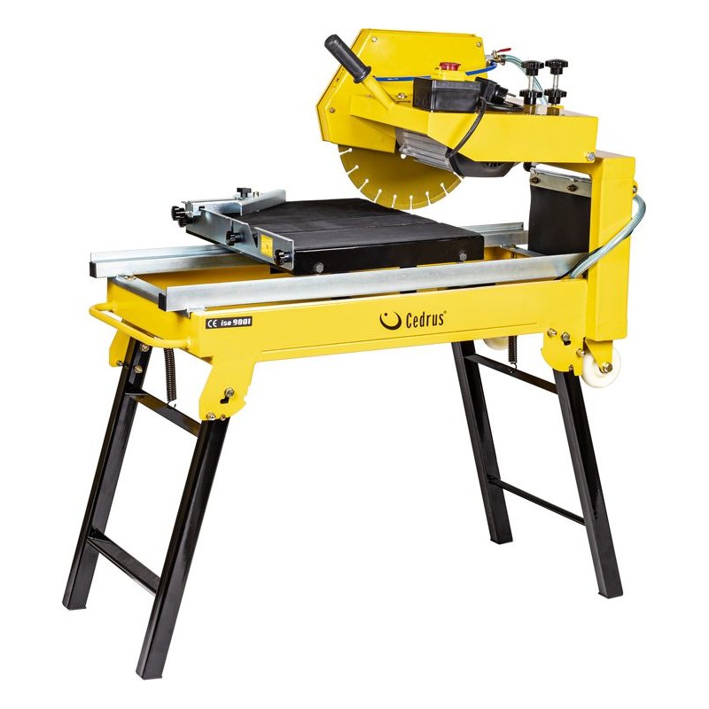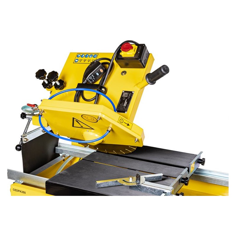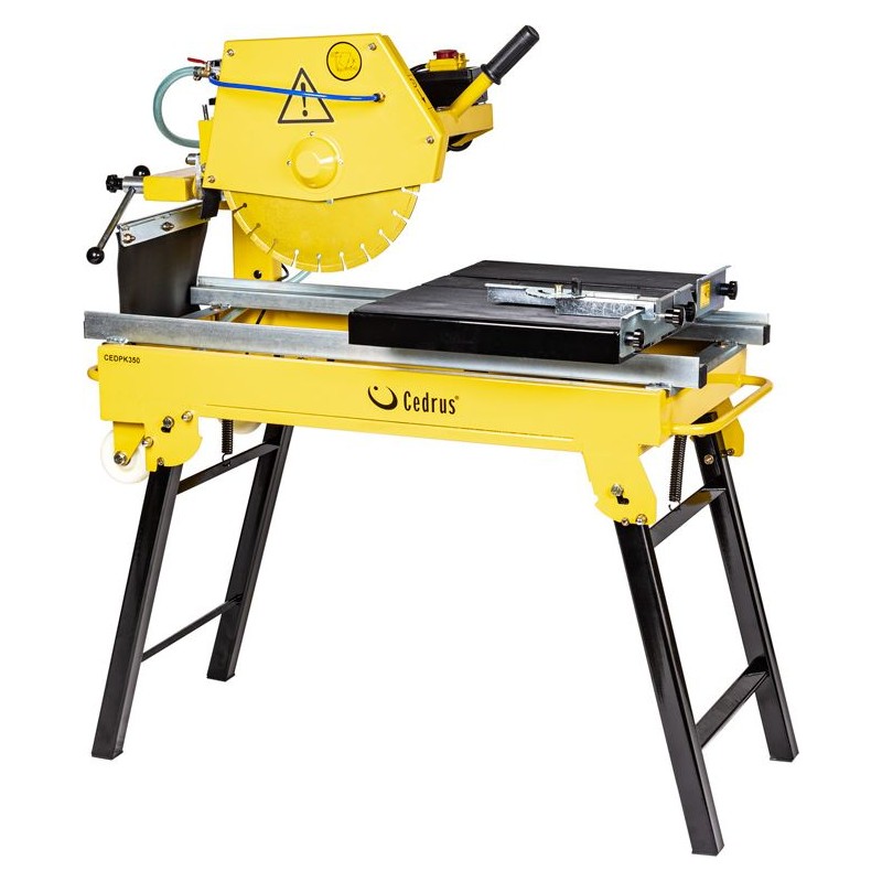PIŁA CEDRUS PK350 jest mocną i silną przecinarką stolikową do cięcia dużych cegieł i bloków. Znakomicie sprawdza się do pracy na budowie. Idealna na placu budowy do cięcia materiałów budowlanych np. porotherm, silka, płyty betonowe , kamienia, betonu, kostki brukowej, pustaków, krawężników, płytek itp. Przecinarka zasilana jest za pomocą jednofazowego silnika o mocy 2,2 kW. Piła pozwala na cięcie materiałów o długości 70 cm oraz głębokości 11 cm.