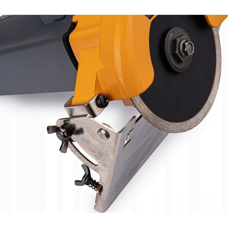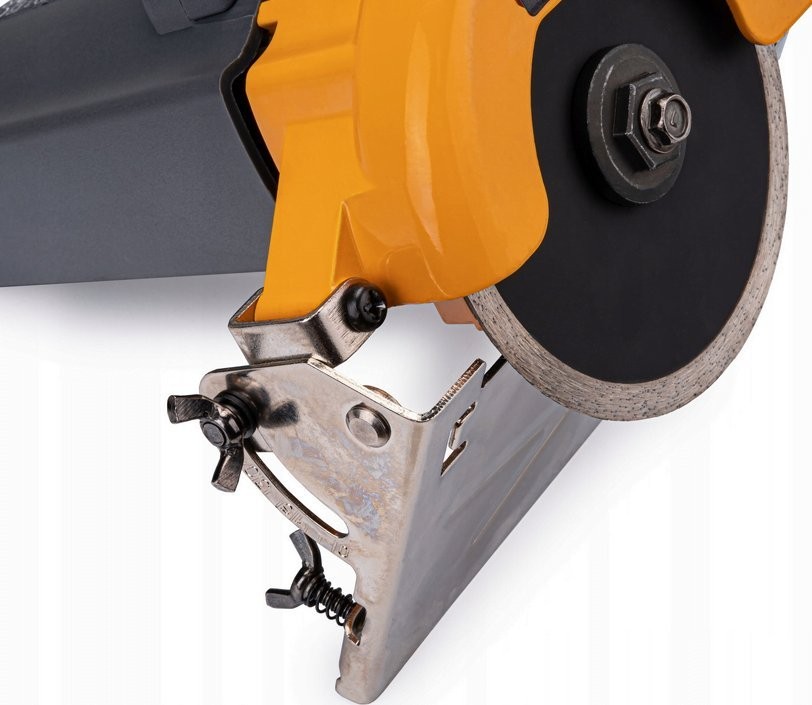 Gwarantuje to niezawodność oraz odporność na uszkodzenia mechaniczne. Płyta dolna została wykonana z grubej stali i jest odporna na odkształcenia i uszkodzenia mechaniczne. Gwarantuje stabilne cięcie i łatwe prowadzenie przecinarki po ciętym materiale. Dodatkowo kształt płyty dolnej umożliwia zamocowanie specjalnych prowadnic do przecinarek, które umożliwiają cięcie pod różnymi kątami.