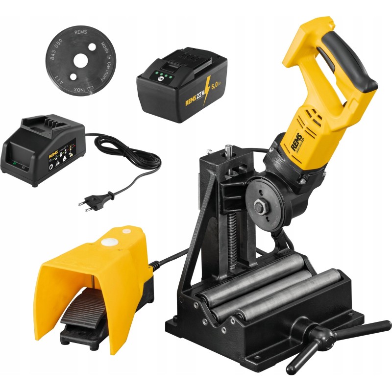 Kompaktowa, przenośna akumulatorowa maszyna do prostej, szybkiej i bezpowstawania gratu cięcia rur. Poręczna i lekka – urządzenie z akumulatorem o wadze zaledwie 17,6 kg. Stabilna, wytrzymała konstrukcja żeliwna zapewnia proste cięcie. Specjalnie ukształtowane kółko tnące ułatwia przecinanie.