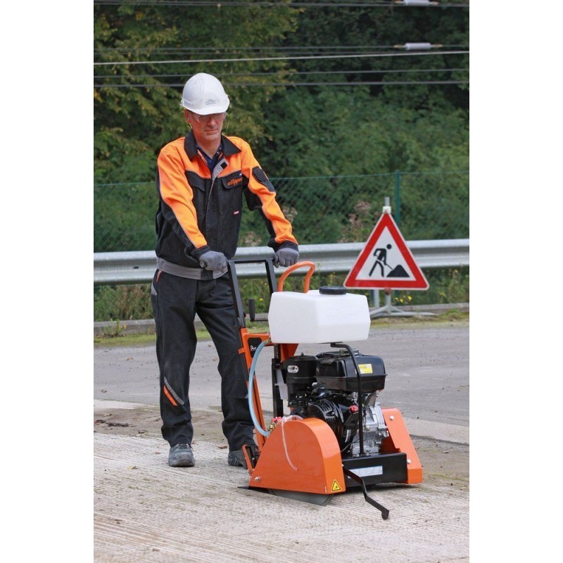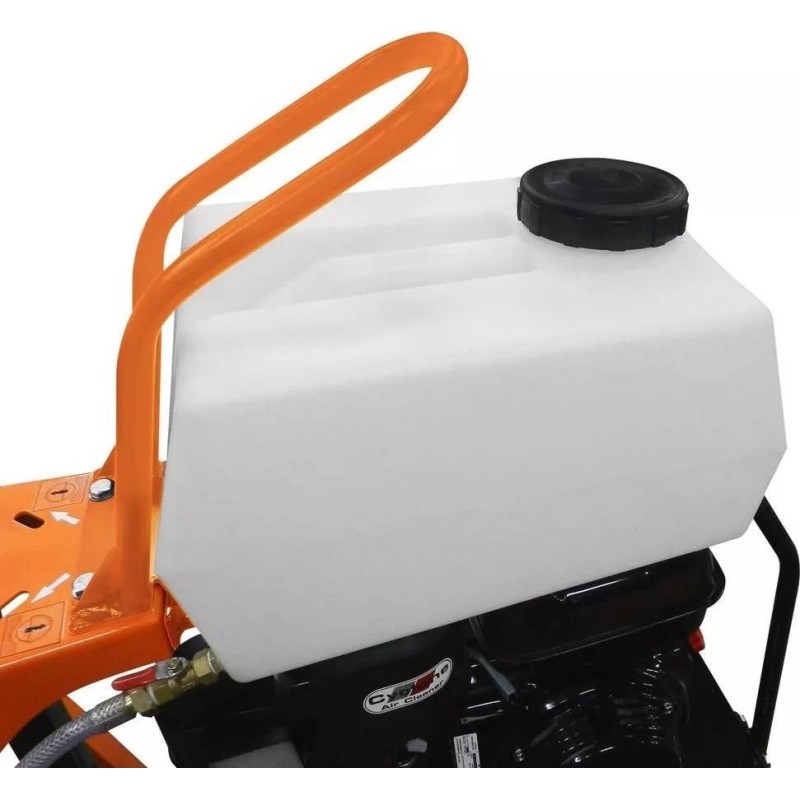 Silnik wyposażony w CYCLONE AIR CLEANER który zapewnia wydłużenie żywotności filtra powietrza, skutkuje to lepszym zabezpieczeniem silnika oraz bezawaryjną pracą. Przecinarka wyposażona jest w cztery kółka (dwa tylne większe), prowadnicę cięcia oraz 20 L zbiornik wody.