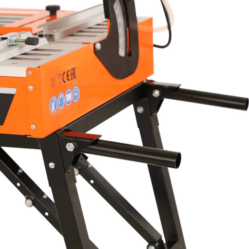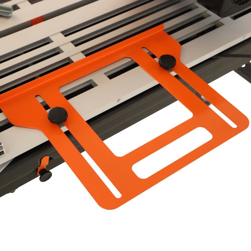 - Wytrzymała szyna prowadząca i prowadnica głowicy tnącej jest idealna do przecinania długich płytek i precyzyjnego cięcia.