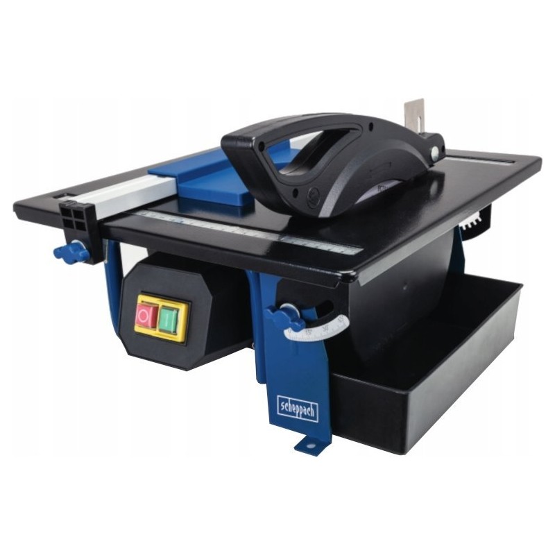 - Przechylny stół z ogranicznikiem ukośnym do wykonywania cięć pod kątem;