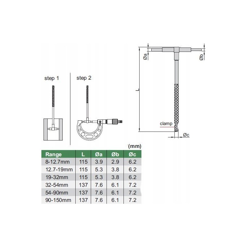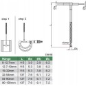 - Średnice - 8-12.7mm, 12.7-19mm, 19-32mm, 32-54mm, 54-90mm, 90-150mm