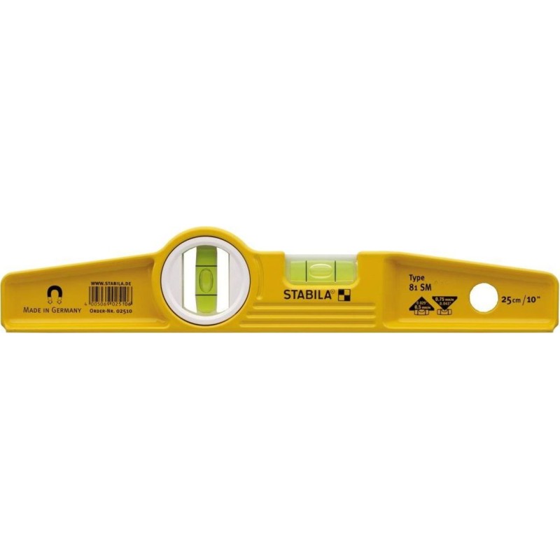 Użytkownicy korzystający z tego modelu mają zawsze wolne ręce podczas wyrównywania i regulowania elementów konstrukcyjnych na metalowych powierzchniach. Poziomnica 81 SM jest wyposażona w system magnesów ferrytowych, który zapewnia dobrą przyczepność. Ten model opiera się na odlewie ciśnieniowym z aluminium o ściętym kształcie, dzięki czemu jest jedną z najbardziej wytrzymałych poziomnic STABILA. Libelle oraz frezowana powierzchnia pomiaru są w procesie produkcji precyzyjnie względem siebie ustawiane, a następnie trwale ze sobą łączone, aby zapewnić maksymalną dokładność pomiaru. Dzięki takiemu rozwiązaniu poziomnica 81 SM odznacza się wyjątkowo długim okresem użytkowania w zastosowaniach budowlanych.