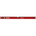 Poziomica BIG X Wykonanie: profil prostokątny z metalu lekkiego, zaślepki pochłaniające wstrząsy. Z jedną libellą poziomą i jedną libellą pionową. Dokładność pomiaru w pozycji normalnej: 0,5 mm/m, dokładność pomiaru w pozycji odwróconej: 0,75 mm/m. Zastosowanie: do pomiaru poziomego i pionowego w pozycji normalnej i odwróconej.