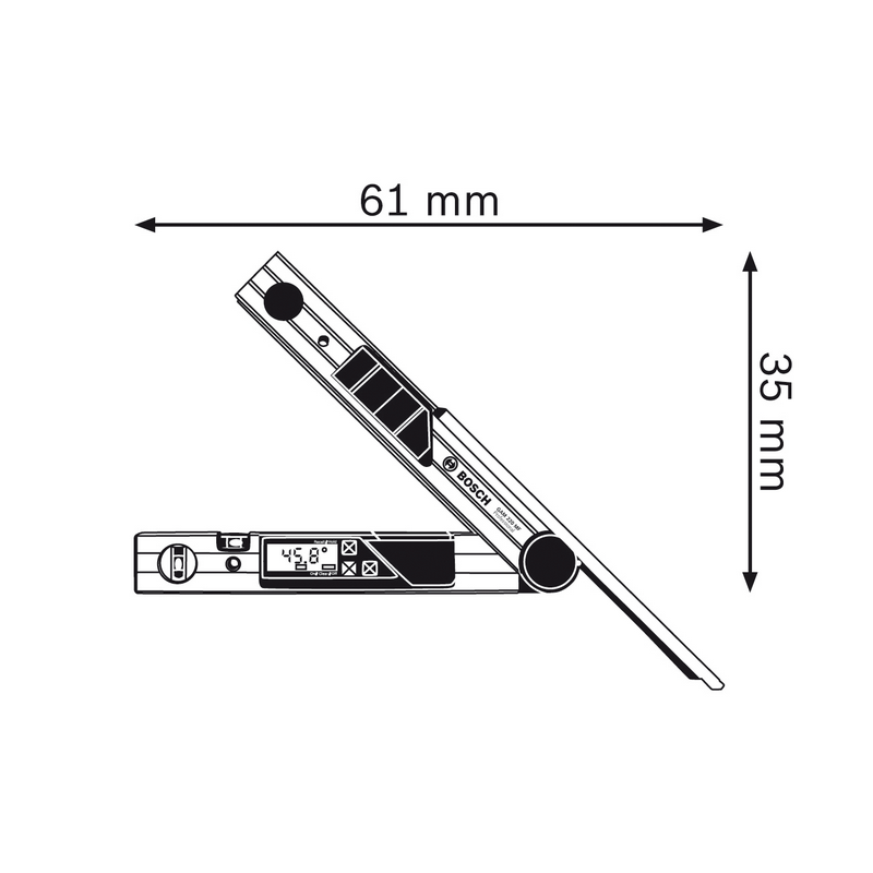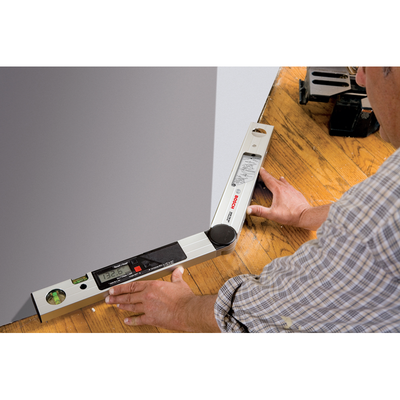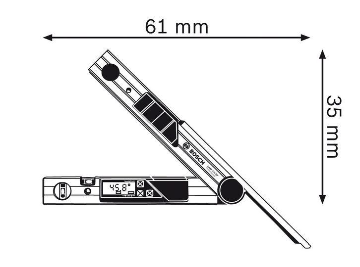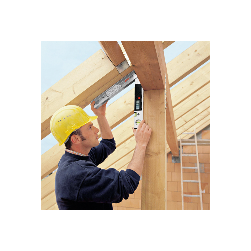 Zwróć uwagę na fakt, zaprezentowany kątomierz sygnowany logo marki Bosch ma stosunkowo niewielkie rozmiary i jest zasilany bateriami. W rezultacie zyskujesz więc dużą mobilność. Można z niego korzystać w dowolnie wybranym miejscu, nawet tam, gdzie brakuje stałego źródła prądu. Z łatwością mieści się w dłoni i nie zajmuje dużo przestrzeni. Bez trudu schowasz go w podręcznej skrzynce z innymi narzędziami albo szafce.
