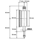 Tarcza podziałki obracana, z dwoma nastawianymi wskaźnikami pola tolerancji. Dodatkowa wskazówka, z działkami co 0,2 mm do całego mm. Korpus z aluminium. Wymienialna końcówka pomiarowa. Bez ucha mocującego.
