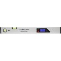 Poziomnica cyfrowa, która podaje wynik pomiaru kąta w °, mm/m, %, in/ft (cale/stopę). Zakres pomiarowy 0°- 360°, sygnalizacja akustyczna przy 0° i 90°, dokładność ±0.05˚ przy 0˚ i 90, w pozostałych częściach zakresu ±0.2˚. Duży wyświetlacz z podświetleniem. Magnesy od spodu umożliwiają mocowanie do metalowych obiektów. Wykonana z profilu aluminiowego ulepszonego cieplnie, nie podatnego na wypaczenia, 54 × 26 mm. Nietłukące libelle o możliwością odczytu z każdej strony. Dostarczana z futerałem i 2 bateriami 1.5 V....