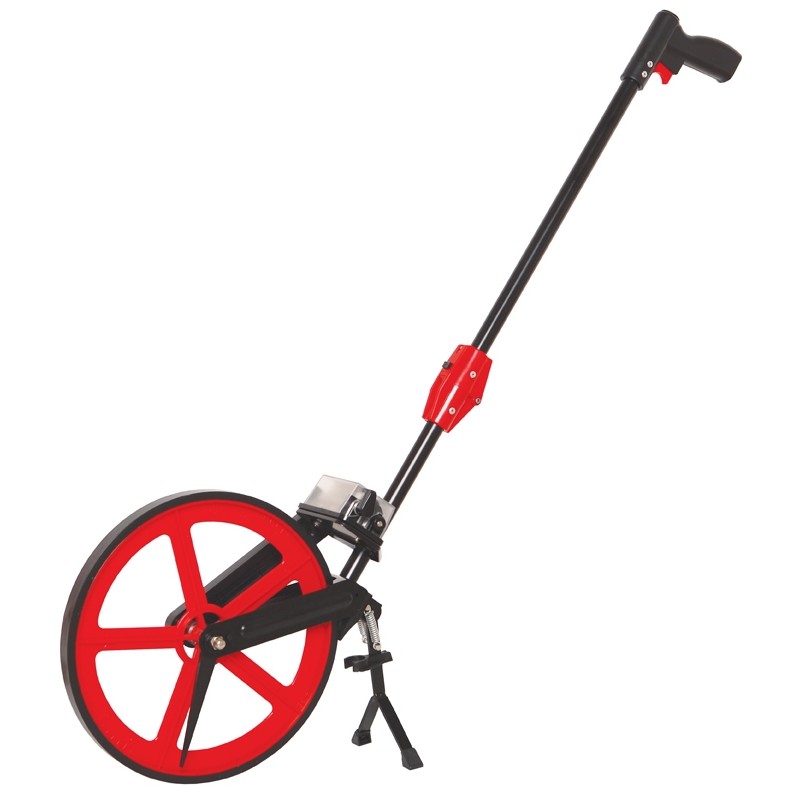 Niezwykle poręczne i uniwersalne urządzenie służące do pomiaru długości w linii prostej oraz po łuku. Doskonale sprawdza się podczas pomiarów drogowych, na budowach w pomiarach geodezyjnych, przy planowaniu ogrodów oraz w przypadkach, gdzie potrzebny jest pomiar znacznych odległości. Duże koło o średnicy 320 mm z tworzywa sztucznego pokryte czarną gumą doskonale sprawdza się zarówno w terenie jak i w obiektach zamkniętych. Obudowa licznika wykonana ze stali nierdzewnej odpornej na warunki atmosferyczne. Nóżki i stojak wykonane ze stali węglowej zapewniającej długą żywotność urządzenia. Koło można składać.