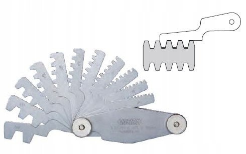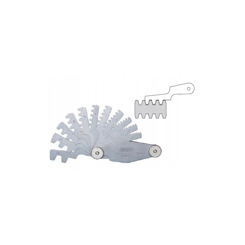 W zestawie znajduje się 12 listków, które obejmują podziałki gwintu od 2 mm do 20 mm. Taka różnorodność sprawia, że wzorzec jest niezwykle funkcjonalny i dostosowany do różnych potrzeb użytkowników.