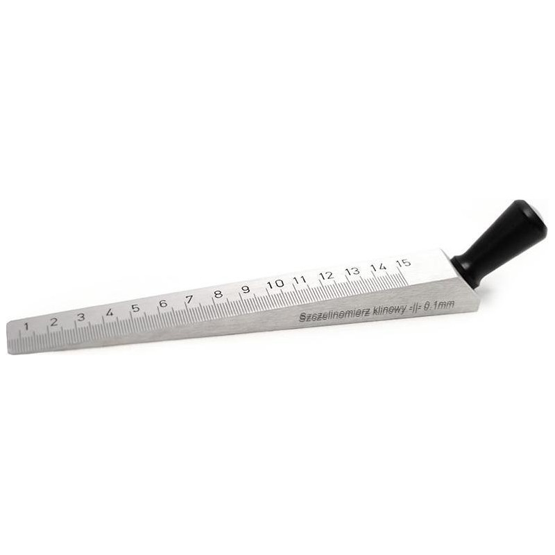 Klin pomiarowy 15cm/mm wykonany z aluminium posiadający odkręcaną rączkę z tworzywa sztucznego. Posiada podziałkę MM. Bardzo solidne wykonanie, odporny na korozję. Przyrząd idealny dla budowlańców i geodetów. Wykorzystywany do pomiaru szczelin oraz luzów. Parametry długość: 15 cm podziałka: mm rączka: odkręcana Zapytaj o większą ilość tel. +48 56 306 61 00