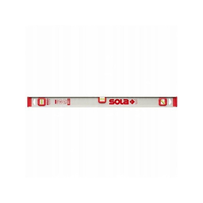 Model Sola I5 120 cm wyposażony jest w trzy libelki: jedną poziomą, jedną pionową oraz dodatkową libelkę skośną pod kątem 45 stopni. Akrylowa obudowa sprawia, że libelki są wyjątkowo czytelne, co umożliwia szybkie i dokładne odczyty pomiarów.