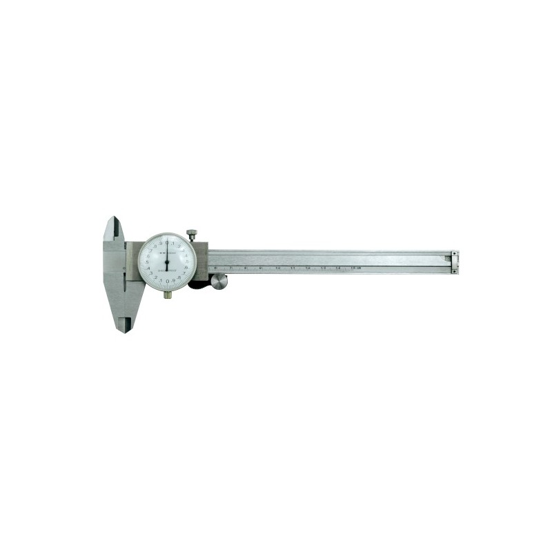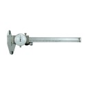 Wykonana ze stali nierdzewnej typowa suwmiarka z odczytem zegarowym.