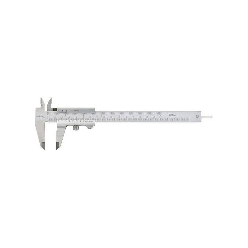 Wykonanie: Z nierdzewnej stali, hartowana na wskroś, elementy odczytowe i noniusz chromowane matowo. Na tylnej stronie tabela gwintów. Dostawa w futerale ze sztucznej skóry. Wykonana zgodnie z normą DIN 862. Długość szczęk - 40 mm.
