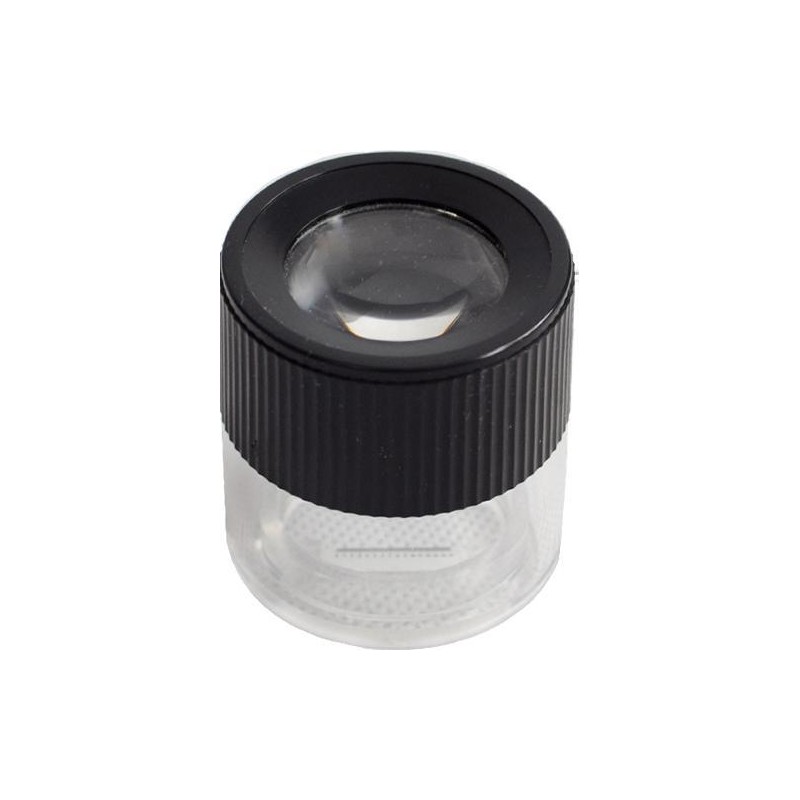 Precyzyjna lupa pomiarowa niemieckiej firmy Richter nr 557 z aplanatyczną optyką składająca się z dwóch identycznych płasko-wypukłych soczewek, wypukłościami skierowanymi do siebie. Soczewki mocowane są na czarnym tworzywie sztucznym, z okrągłą przezroczystą podstawką. Służy ona do pomiaru rys. Zdejmowana skala pomiarowa, stały okular. Parametry Powiększenie: 10x Podziałka: 0,1 mm Długość skali: 15mm Średnica: 45mm Wysokość: 55mm Zapytaj o większą ilość tel. +48 56 306 61 00