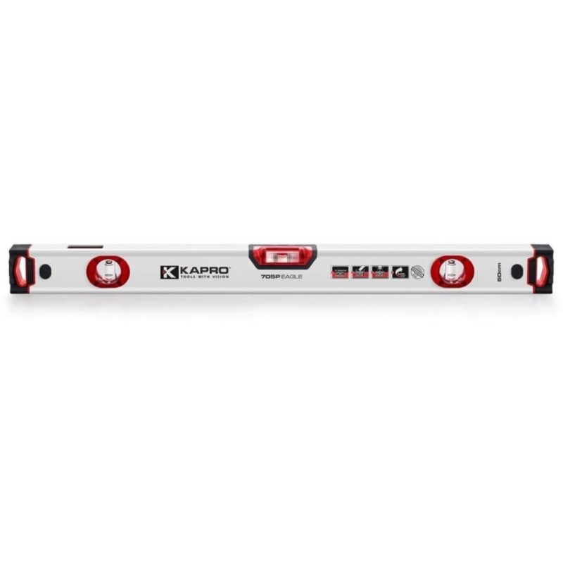 Poziomica została zaprojektowana z myślą o trwałości oraz komforcie użytkowania. Wyposażona w bi-materiałowe końcówki z gumy amortyzującej, Gulsčiukas Optivision Eagle jest odporna na uszkodzenia i zapewnia wygodę podczas pracy. Dodatkowo, precyzyjnie frezowana podstawa do 120 cm oraz mostek przy poziomce poziomej zwiększają wytrzymałość konstrukcji.