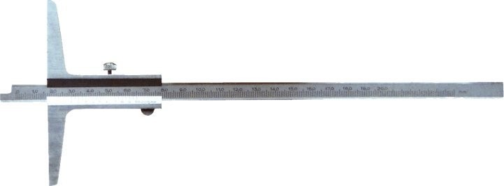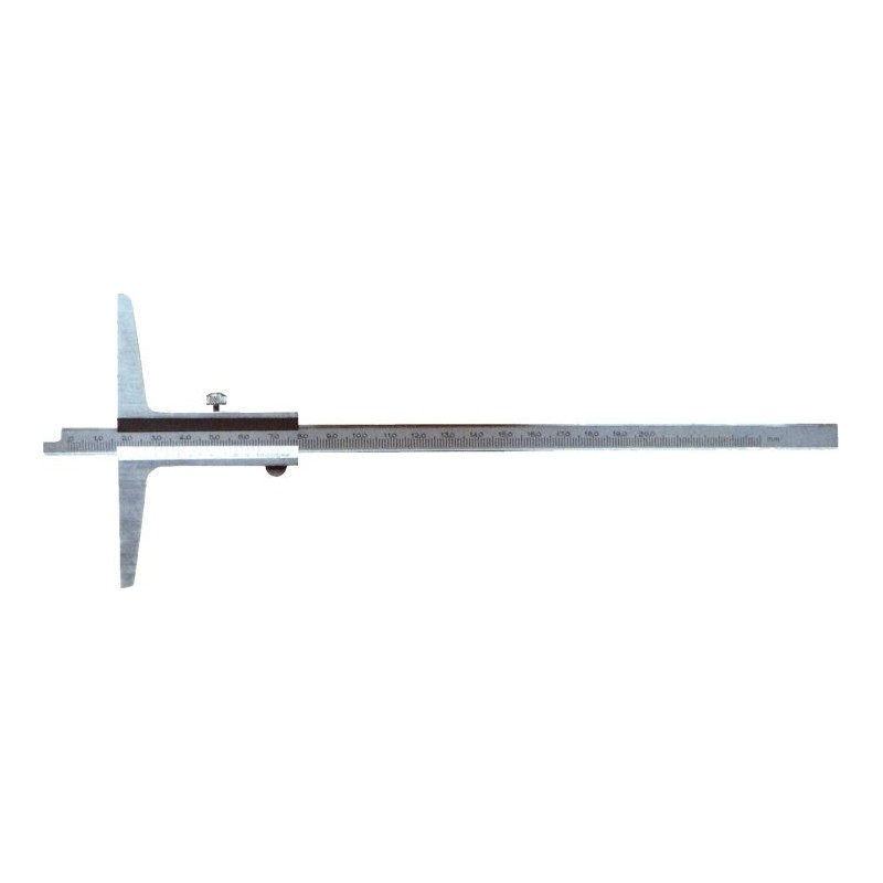 SpecyfikacjaWskaźnik głębokości o długości 200 mm i podstawie 100 mm, wykonany ze stali nierdzewnej. Posiada skalę i noniusz wykończone satynowym chromem, co zapewnia wysoką precyzję pomiaru. Dokładność wynosi 0,05 mm zgodnie z normą DIN 862.