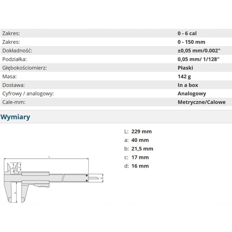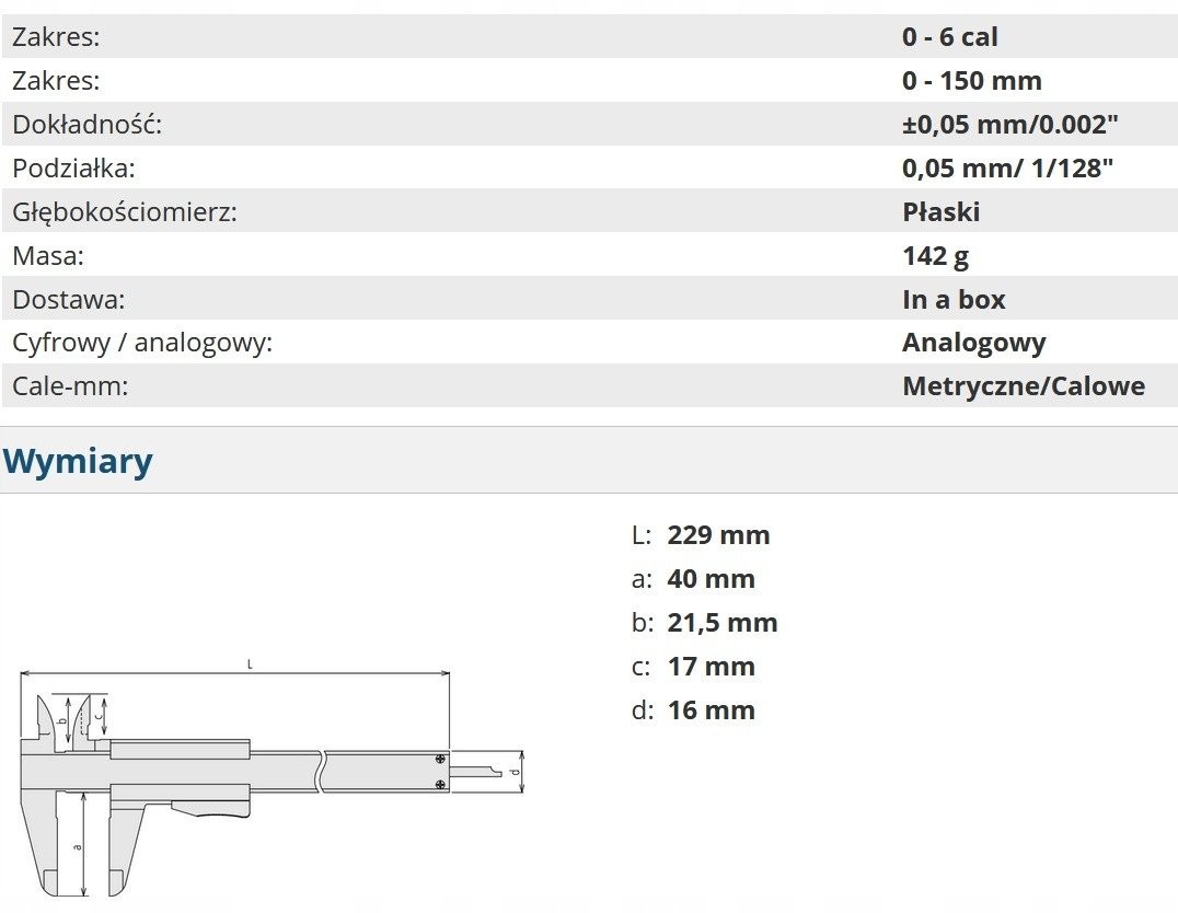 Zakres pomiaru do 150 mm z dokładnością 0,05 mm