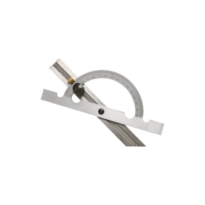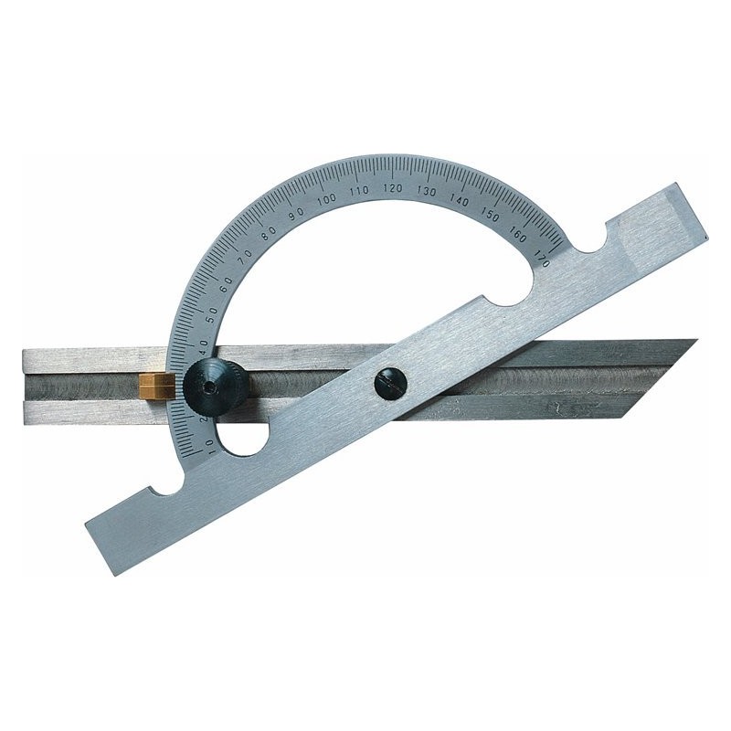 SpecyfikacjaGradmesser stalowy, mattverchromt o długości 150 mm, wykonany z materiałów odpornych na korozję. Posiada zakres pomiarowy od 10 do 170° oraz regulowaną długość ostrza. W zestawie znajduje się etui oraz śruba mocująca.