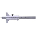 Ze stali nierdzewnej. Podziałka chromowana na mat. Z wymiennym, hartowanym trzpieniem stalowym. Podziałka w mm, wyposażona w noniusz o rozdzielczości 1/20 mm. Z zaciskiem ustalającym.