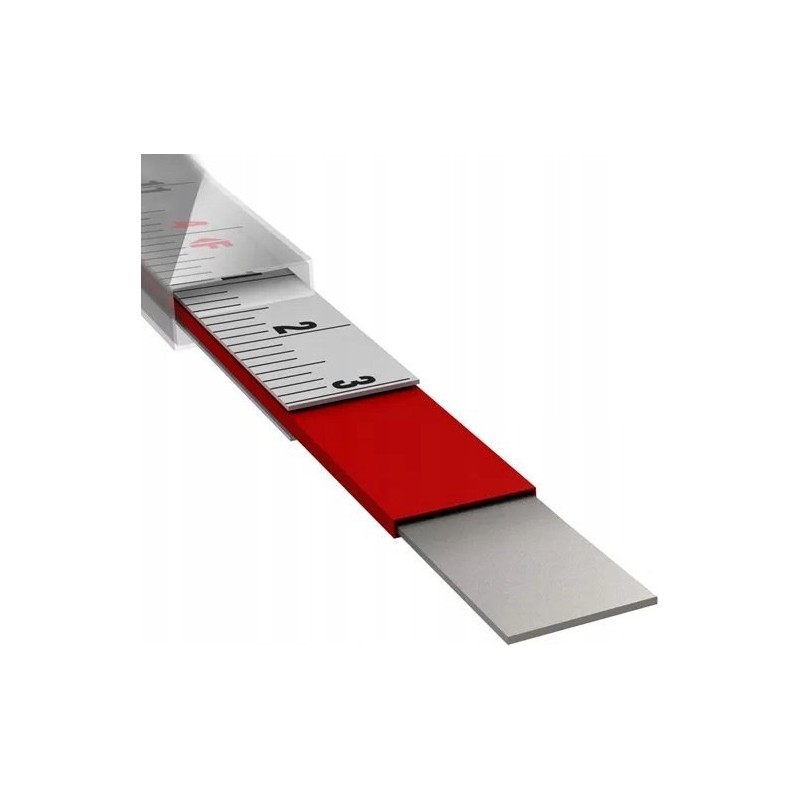 - Podziałka z dwóch stron. Metryczna na górze, a calowa na dole taśmy
