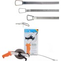 Stalowa taśma niemieckiej firmy RICHTER 464SR 50m, wykonana z niełamliwego i odpornego na korozję stopu stali. Podziałka trawiona w stali. Taśma posiada ergonomiczny uchwyt z wysokiej jakości tworzywa, dzięki któremu pewnie trzyma się ją w rękach. Stalowa, składana korbka ułatwiająca szybkie zwijanie, konstrukcja nitowana, odporna na uderzenia. Ramka taśmy wykonana z lekkiego stopu aluminium. Parametry Długość: 50m Materiał: stalowa trawiona Szerokość taśmy: 13 mm, Podkład skali: srebrny Skala: milimetrowa, trawiona, Wartość skali: srebrna, trawiona. Miara zgodna ze standardami UE w II klasie dokładności (+/- 2.3mm na 10m). Zapytaj o większą ilość tel. 56 306 61 00